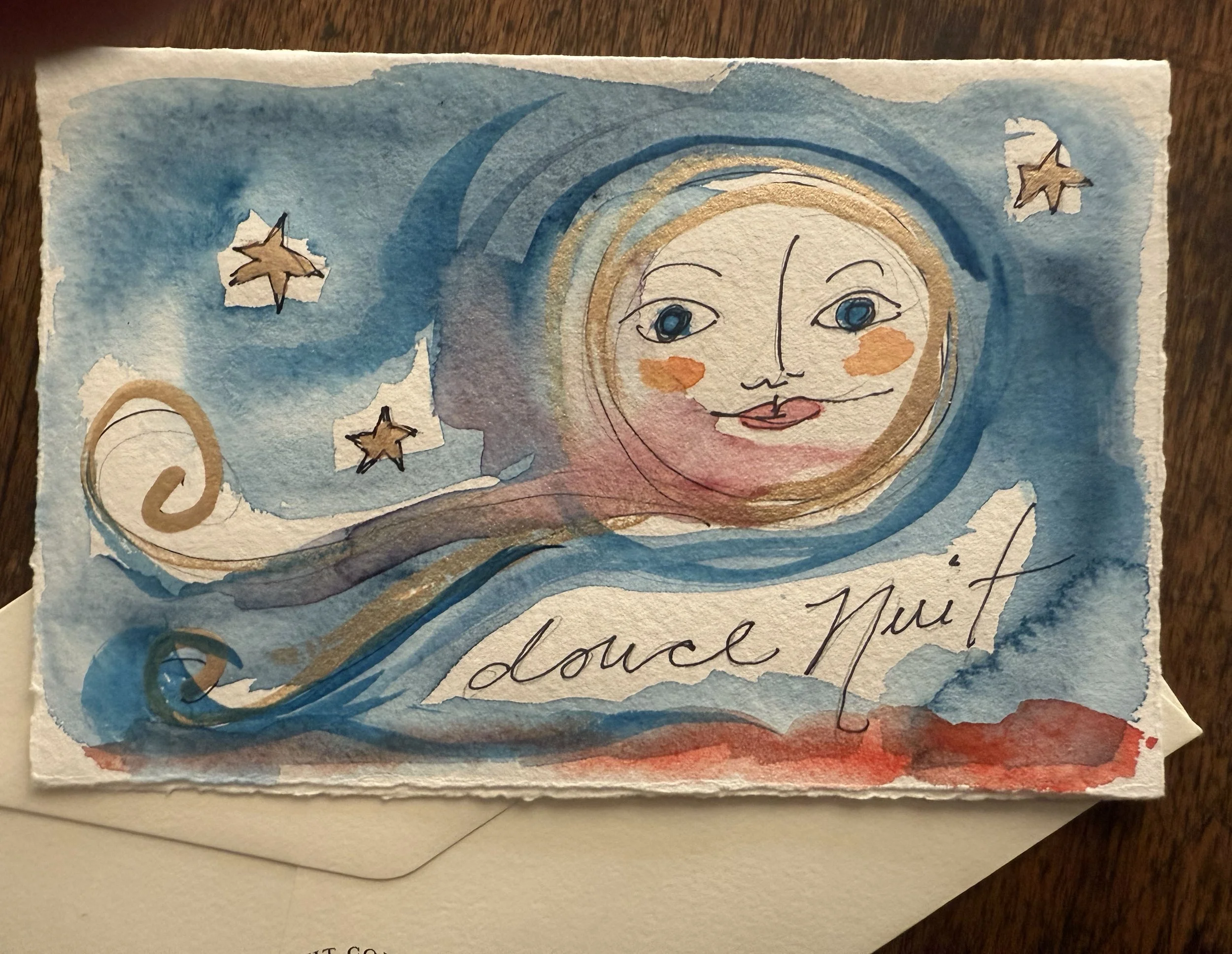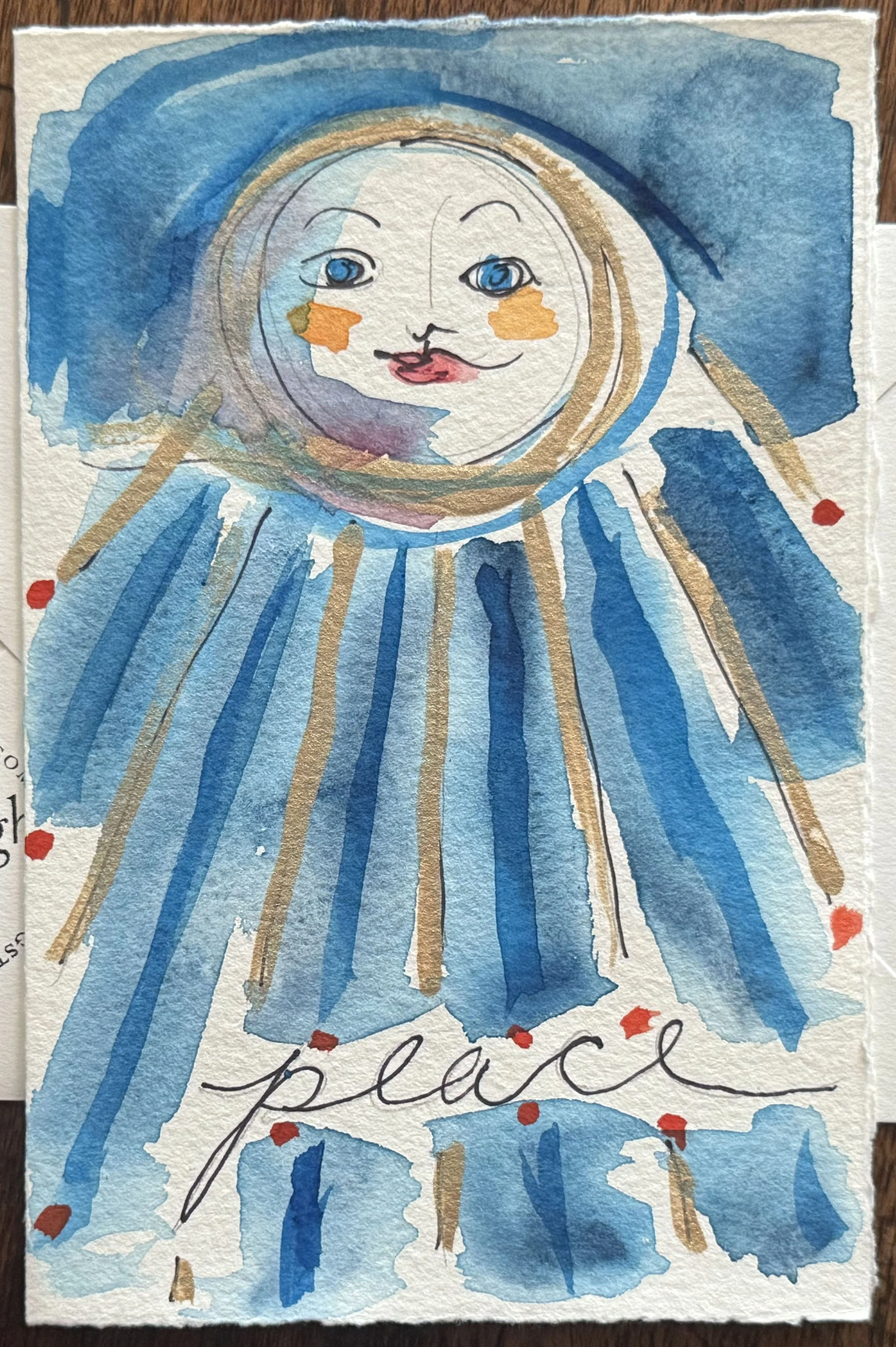 Shop Categories: All Original Art Greeting Cards Greeting Cards Watercolor Kits Original Watercolor Paintings Functional Art Objects Shop All | Original Art Greeting Cards | Greeting Cards | Watercolor Kits | Original Watercolor Paintings | Functional Art Objects | Original Art HOLIDAY Greeting Cards - Douce Nuit $16.00 Original Art HOLIDAY Greeting Cards - Peace Joy Happiness $16.00 Original Art HOLIDAY Greeting Cards - Joy $16.00 Original Art HOLIDAY Greeting Cards - Light of Peace $16.00 Original Art HOLIDAY Greeting Cards - Peace - yellow theme $16.00 Original Art HOLIDAY Greeting Cards - Peace - blue theme $16.00 Original Art HOLIDAY Greeting Cards - Beaming Light $16.00 Gold foil stamped cards $9.00 Original Art Greeting Cards – Square Format $14.00 Original Art Greeting Cards $8.00 Functional Art – set watercolor brushes and feathers in natural driftwood brush holder $140.00 Functional Art – set of watercolor brushes and feathers in natural driftwood brush holder $120.00 Watercolor Kit – Wallet Style $60.00 Pouch Style for 4" x 6" Paper $54.00 Pouch Style for 5" x 7" watercolor paper $48.00 Landscape – Tryptich (one of three), 4” x 8” (no matte) $100.00 Landscape – Tryptich (two of three), 4” x 8” (no matte) $0.00 Landscape – Tryptich (three of three), 4” x 8” (no matte) $100.00 Clouds; 4.5” x 5”; professionally matted $120.00 Deep Blue; 4.5” x 5”; professionally matted $120.00 Blue and Red; 4.5” x 5”; professionally matted $120.00 Ocean Blue Yellow; 5.5” x 7.5”; professionally matted $120.00 World Eye; 5.5” x 7.5”; unmatted $100.00 Bright; 5.5” x 7.5”; professionally matted $120.00 Clouds (bright); 5.5” x 7.5”; unmatted $120.00 Poppies; 5.5” x 7.5”; unmatted $100.00 Octopus; 7” x 6.5”; unmatted $60.00 Lion; 7” x 6.5”; unmatted $60.00 Coyote; 7” x 6.5”; unmatted $60.00 Blue Belly; 7” x 6.5”; unmatted $60.00 Greeting Card – Hummingbird with Flower – pkg of 5 $36.00 Greeting Card – Hummingbird Sprite – pkg of 5 $36.00 Greeting Card – Woman – pkg of 5 $36.00